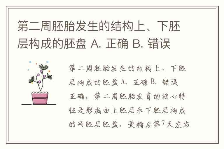 第二周胚胎发生的结构上、下胚层构成的胚盘 A. 正确 B. 错误
