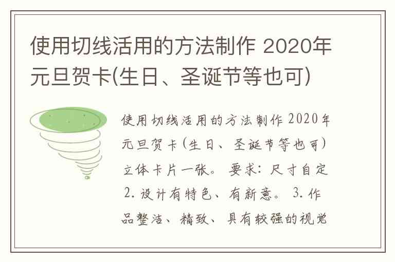 使用切线活用的方法制作 2020年元旦贺卡(生日、圣诞节等也可)立体卡片一张。 要求: 尺寸自定 2.设计有特色、有新意。 3.作品整洁、精致、具有较强的视觉美感。
