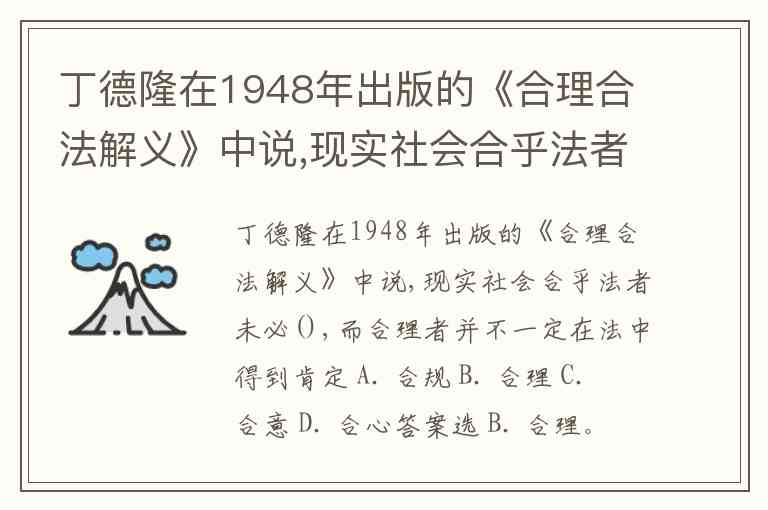 丁德隆在1948年出版的《合理合法解义》中说,现实社会合乎法者未必(),而合理者并不一定在法中得到肯定 A. 合规 B. 合理 C. 合意 D. 合心