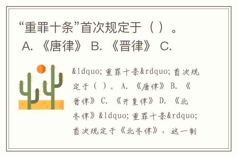 “重罪十条”首次规定于( )。 A. 《唐律》 B. 《晋律》 C. 《开皇律》 D. 《北齐律》