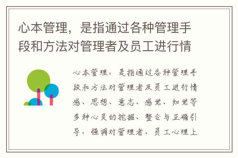 心本管理的核心在于通过对心灵层面(情感、思想、意志等)的挖掘、引导与整合,实现管理者与员工的心理凝聚和内在自觉,而非依赖外在强制或条件性交换。我们需判断哪个选项偏离了这一核心。