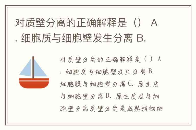 对质壁分离的正确解释是() A. 细胞质与细胞壁发生分离 B. 细胞膜与细胞壁分离 C. 原生质与细胞壁分离 D. 原生质层与细胞壁分离