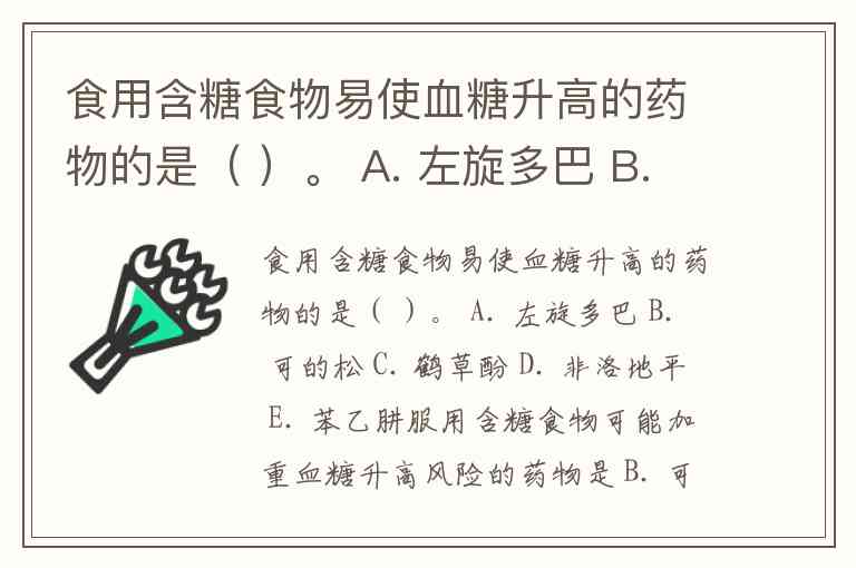 食用含糖食物易使血糖升高的药物的是( )。 A. 左旋多巴 B. 可的松 C. 鹤草酚 D. 非洛地平 E. 苯乙肼