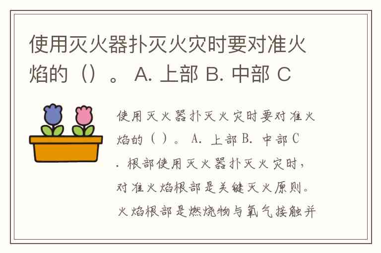 使用灭火器扑灭火灾时要对准火焰的()。 A. 上部 B. 中部 C. 根部