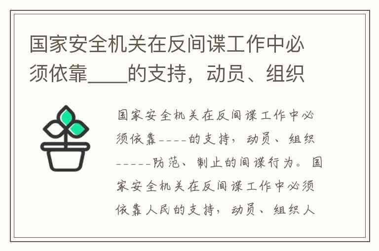 国家安全机关在反间谍工作中必须依靠____的支持,动员、组织_____防范、制止的间谍行为。