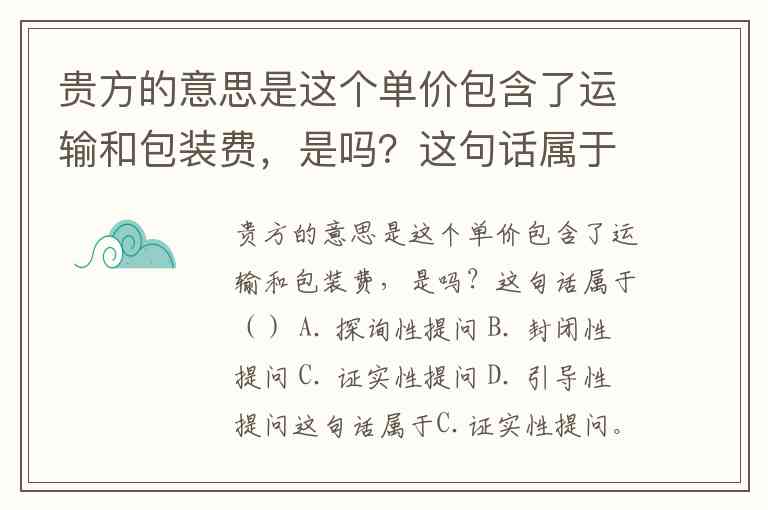 贵方的意思是这个单价包含了运输和包装费,是吗?这句话属于() A. 探询性提问 B. 封闭性提问 C. 证实性提问 D. 引导性提问