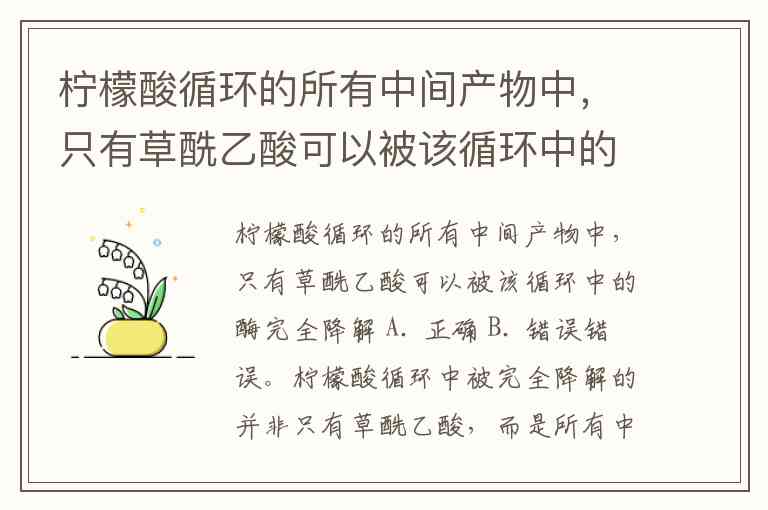 柠檬酸循环的所有中间产物中,只有草酰乙酸可以被该循环中的酶完全降解 A. 正确 B. 错误