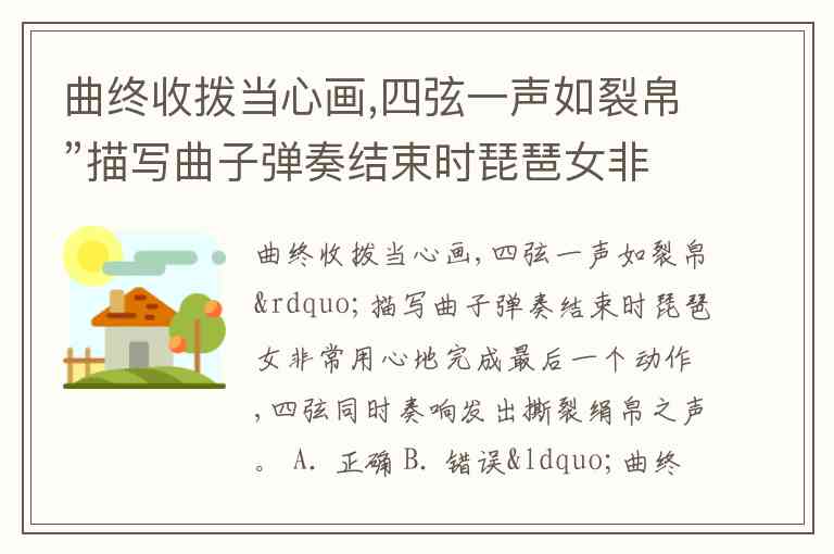 曲终收拨当心画,四弦一声如裂帛”描写曲子弹奏结束时琵琶女非常用心地完成最后一个动作,四弦同时奏响发出撕裂绢帛之声。 A. 正确 B. 错误