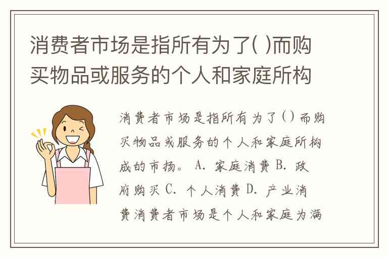 消费者市场是指所有为了( )而购买物品或服务的个人和家庭所构成的市扬。 A. 家庭消费 B. 政府购买 C. 个人消费 D. 产业消费