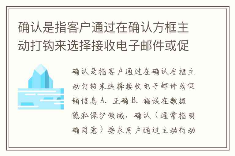 确认是指客户通过在确认方框主动打钩来选择接收电子邮件或促销信息 A. 正确 B. 错误