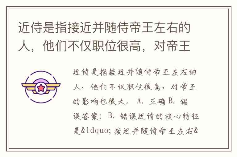 近侍是指接近并随侍帝王左右的人,他们不仅职位很高,对帝王的影响也很大。 A. 正确 B. 错误