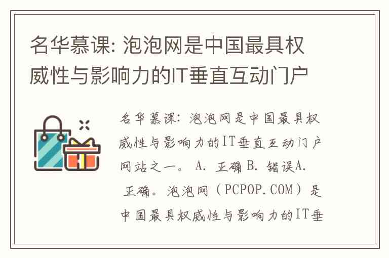 名华慕课: 泡泡网是中国最具权威性与影响力的IT垂直互动门户网站之一。 A. 正确 B. 错误