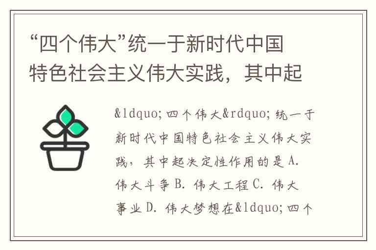 “四个伟大”统一于新时代中国特色社会主义伟大实践,其中起决定性作用的是 A. 伟大斗争 B. 伟大工程 C. 伟大事业 D. 伟大梦想