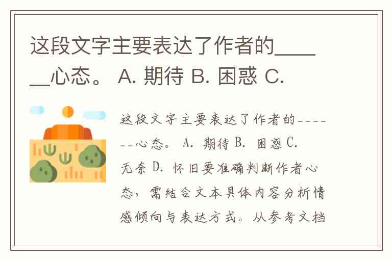 这段文字主要表达了作者的______心态。 A. 期待 B. 困惑 C. 无奈 D. 怀旧