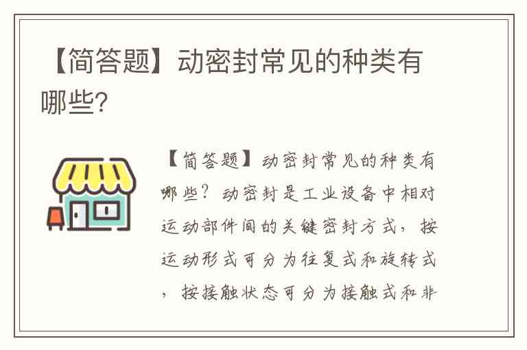 动密封是工业设备中相对运动部件间的关键密封方式,按运动形式可分为往复式和旋转式,按接触状态可分为接触式和非接触式。其核心是在允许部件运动的同时阻止介质泄漏,常见类型包括: