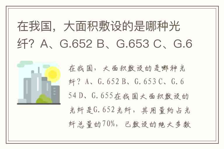 在我国,大面积敷设的是哪种光纤?A、G.652 B、G.653 C、G.654 D、G.655