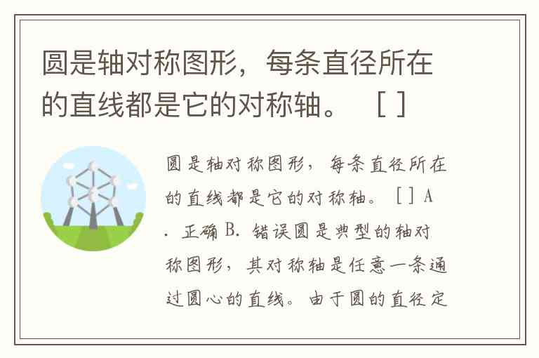 圆是轴对称图形,每条直径所在的直线都是它的对称轴。 [ ] A. 正确 B. 错误