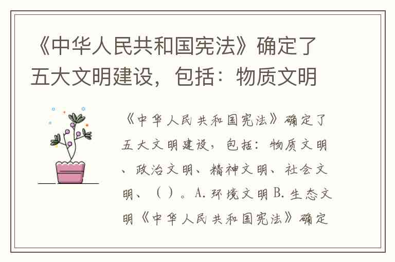 《中华人民共和国宪法》确定了五大文明建设,包括:物质文明、政治文明、精神文明、社会文明、()。A.环境文明 B.生态文明