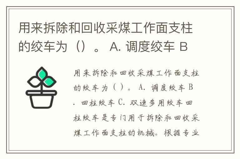 用来拆除和回收采煤工作面支柱的绞车为()。 A. 调度绞车 B. 回柱绞车 C. 双速多用绞车