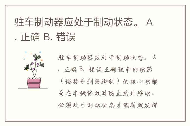 驻车制动器应处于制动状态。 A. 正确 B. 错误