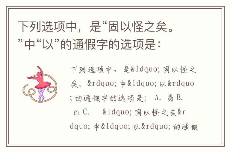 “固以怪之矣”中“以”的通假字是“已”。这一结论在《陈涉世家》的多个权威注释和文言知识归纳中均有明确说明,如语文书下注释直接指出“以”通“已”,意为“已经”,其他文献也多次印证了这一用法,包括高中语文通假字汇总、《史记》相关研究等。