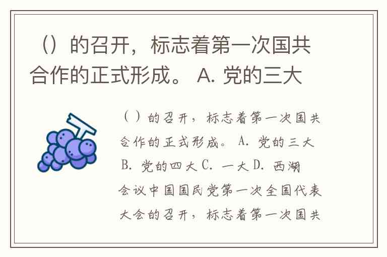 ()的召开,标志着第一次国共合作的正式形成。 A. 党的三大 B. 党的四大 C. 一大 D. 西湖会议