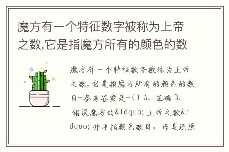 魔方有一个特征数字被称为上帝之数,它是指魔方所有的颜色的数目-参考答案是-( ) A. 正确 B. 错误