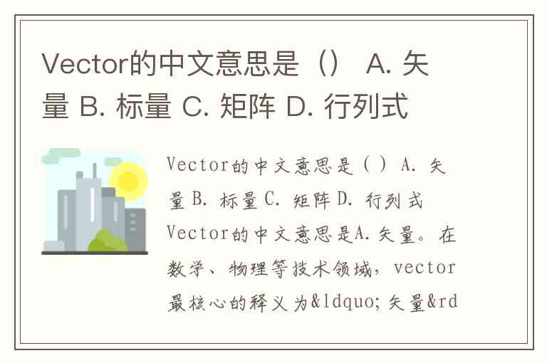 Vector的中文意思是() A. 矢量 B. 标量 C. 矩阵 D. 行列式