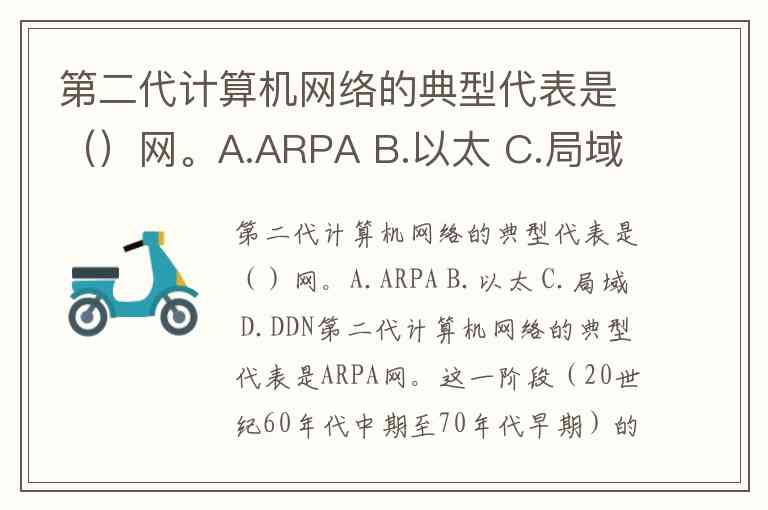 第二代计算机网络的典型代表是()网。A.ARPA B.以太 C.局域 D.DDN