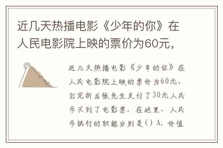人民币在电影票交易中展现了两种核心职能:60元票价体现价值尺度,30元支付体现流通手段,答案选A。