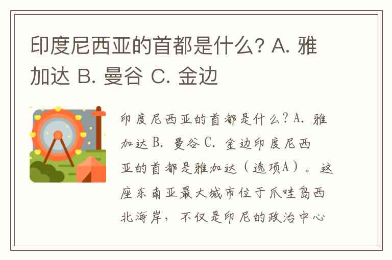 印度尼西亚的首都是什么? A. 雅加达 B. 曼谷 C. 金边