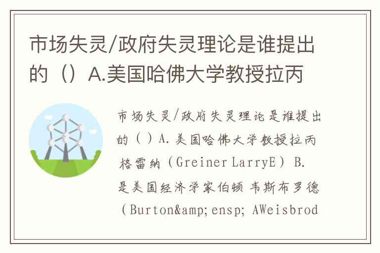 市场失灵/政府失灵理论是谁提出的()A.美国哈佛大学教授拉丙 格雷纳(Greiner LarryE) B.是美国经济学家伯顿 韦斯布罗德(Burton AWeisbrod) C.美国法律经济学家亨利 汉斯曼(Henry BHansmann) D.美国公共政策学者、非营利组织研究专家萨拉蒙(Salamon)