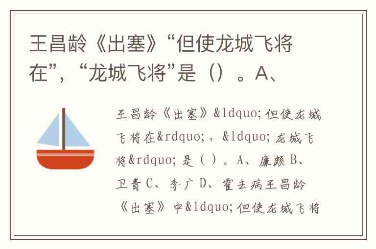 王昌龄《出塞》中“但使龙城飞将在”的“龙城飞将”是文学史上长期争议的焦点。从史料依据和诗歌意象来看,答案应为C、李广。