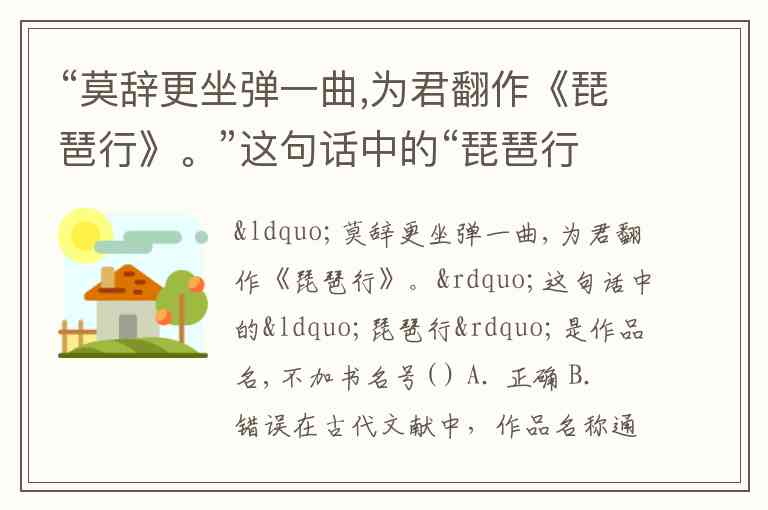“莫辞更坐弹一曲,为君翻作《琵琶行》。”这句话中的“琵琶行”是作品名,不加书名号( ) A. 正确 B. 错误