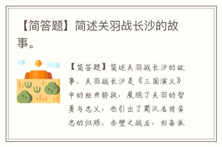 【简答题】简述关羽战长沙的故事。