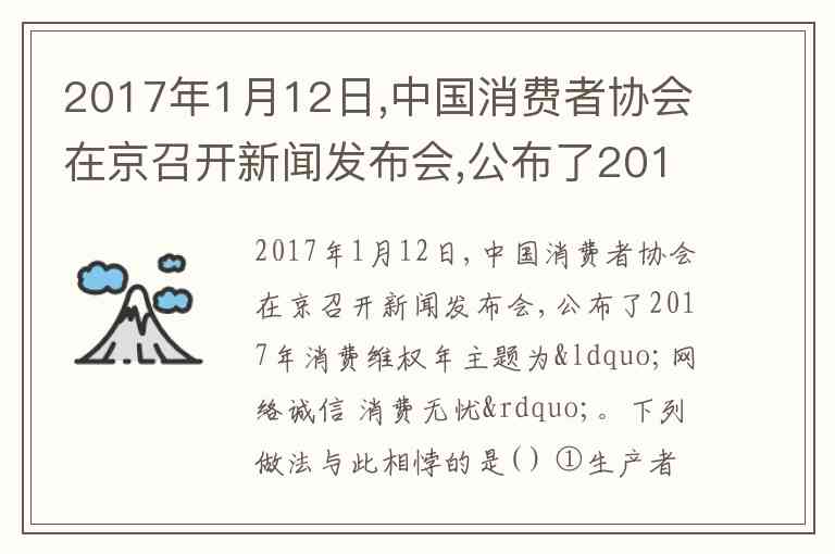 2017年1月12日,中国消费者协会在京召开新闻发布会,公布了2017年消费维权年主题为“网络诚信 消费无忧”。下列做法与此相悖的是( ) ①生产者为追求利益最大化,原材料以次充好 ②某网络经营者严禁伪冒假劣商品登录电商平台 ③网购时出现问题,小商品不予理会,大宗商品必须追究责任 ④工商部门加大对网络经营合法性的监管力度 A. ①③④ B. ②③④ C. ①③ D. ②④ E. ①③B.①④C.②③D.②④
