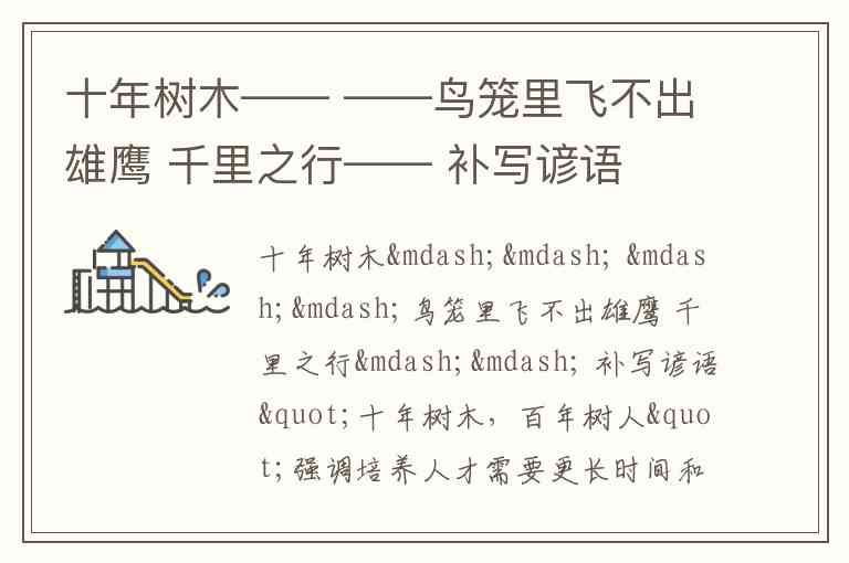 十年树木—— ——鸟笼里飞不出雄鹰 千里之行—— 补写谚语