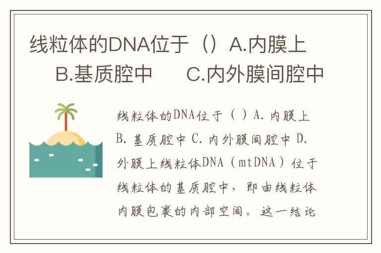 线粒体的DNA位于()A.内膜上 B.基质腔中 C.内外膜间腔中 D.外膜上