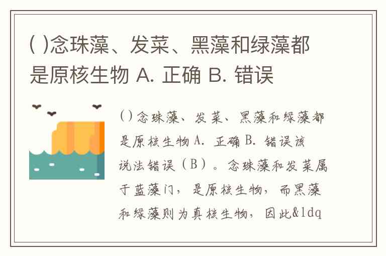 ( )念珠藻、发菜、黑藻和绿藻都是原核生物 A. 正确 B. 错误