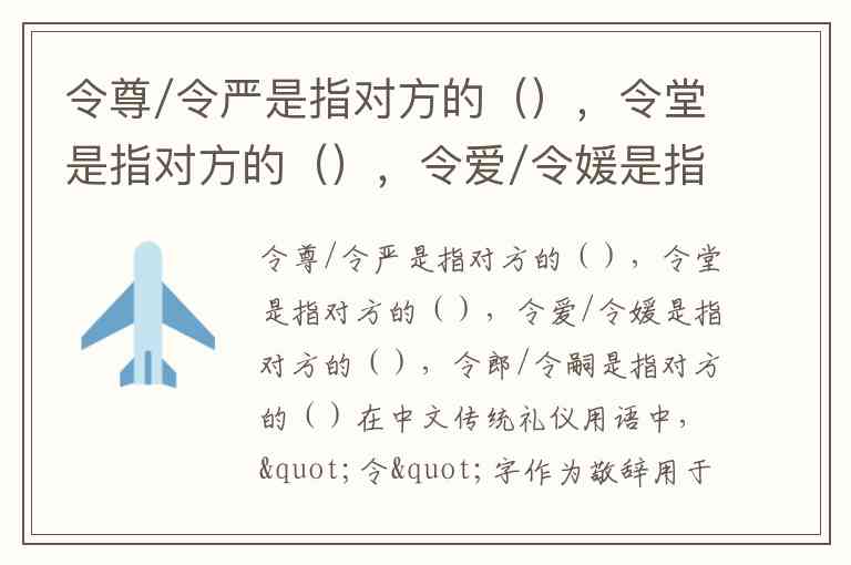 在中文传统礼仪用语中,"令"字作为敬辞用于称呼对方的亲属,表示尊重。这些称谓体现了汉语文化中长幼有序、内外有别的社交礼仪规范。