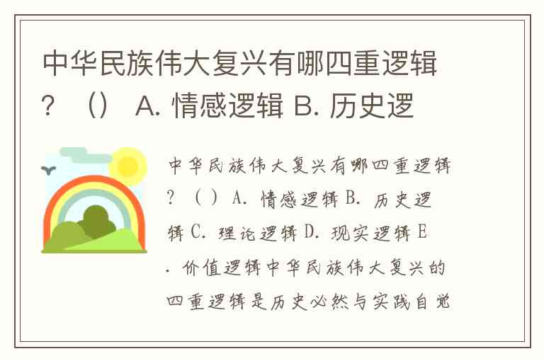 中华民族伟大复兴有哪四重逻辑?() A. 情感逻辑 B. 历史逻辑 C. 理论逻辑 D. 现实逻辑 E. 价值逻辑