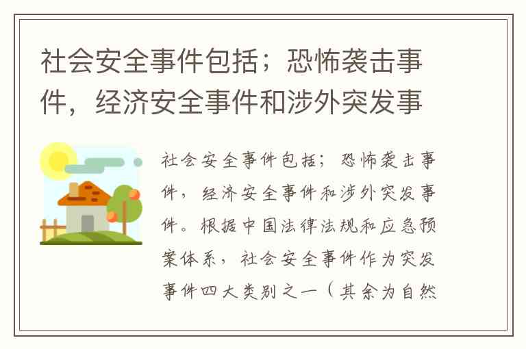 社会安全事件包括;恐怖袭击事件,经济安全事件和涉外突发事件。