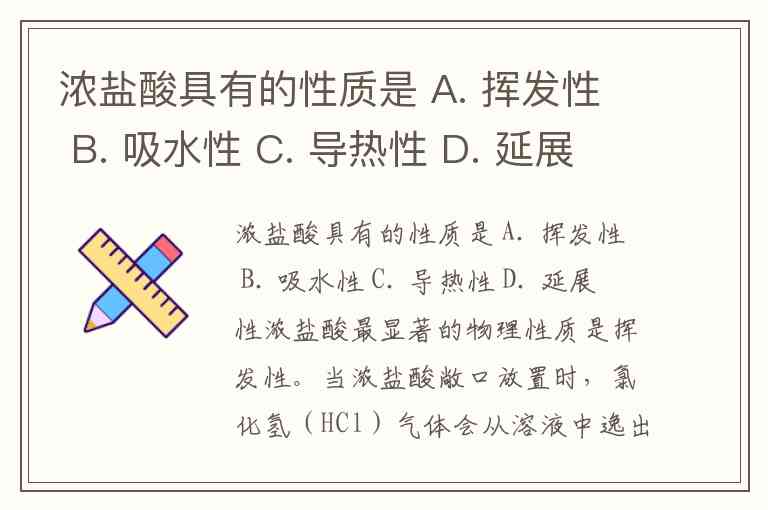 浓盐酸具有的性质是 A. 挥发性 B. 吸水性 C. 导热性 D. 延展性