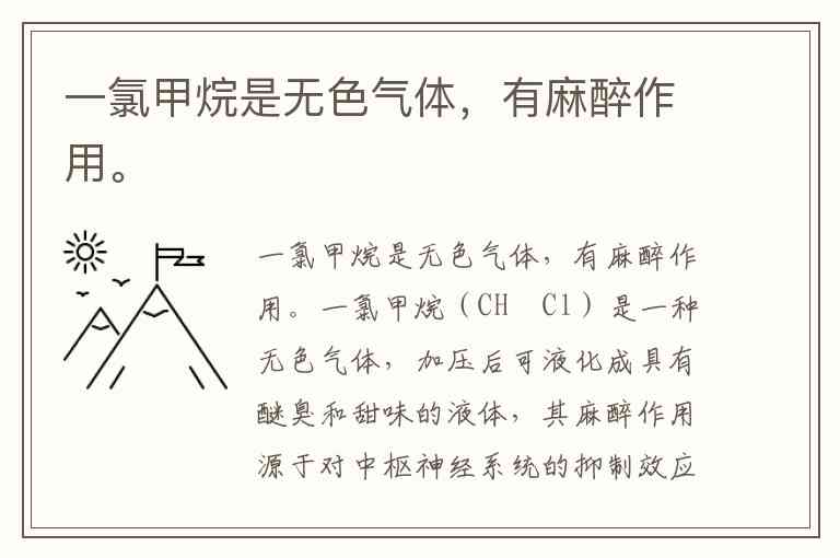 一氯甲烷是无色气体,有麻醉作用。