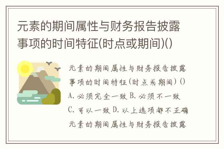 元素的期间属性与财务报告披露事项的时间特征(时点或期间)()A.必须完全一致 B.必须不一致 C.可以一致 D.以上选项都不正确