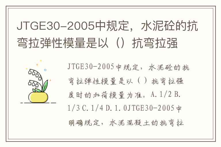 JTGE30-2005中规定,水泥砼的抗弯拉弹性模量是以()抗弯拉强度时的加荷模量为准。A.1/2 B.1/3 C.1/4 D.1.0