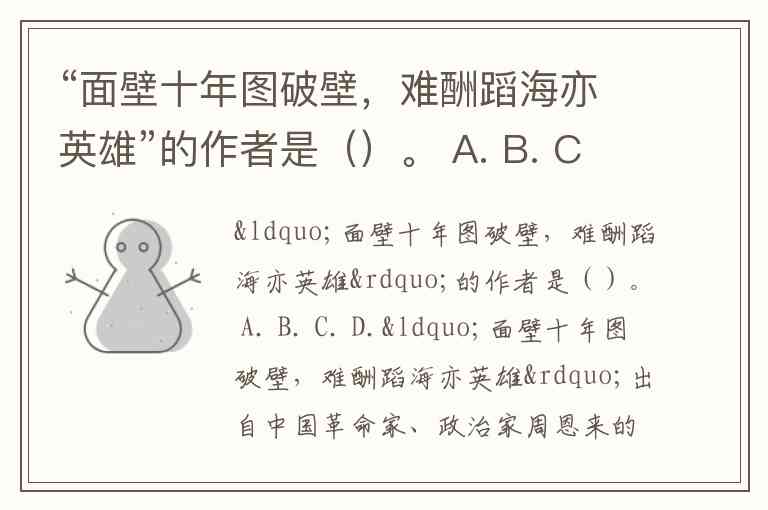 “面壁十年图破壁,难酬蹈海亦英雄”的作者是()。 A. B. C. D.