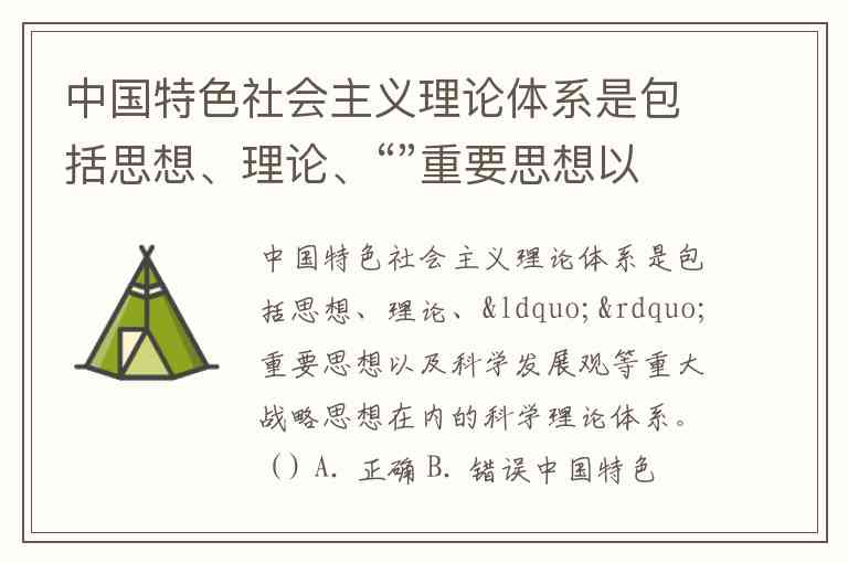 中国特色社会主义理论体系是包括思想、理论、“”重要思想以及科学发展观等重大战略思想在内的科学理论体系。 ( ) A. 正确 B. 错误