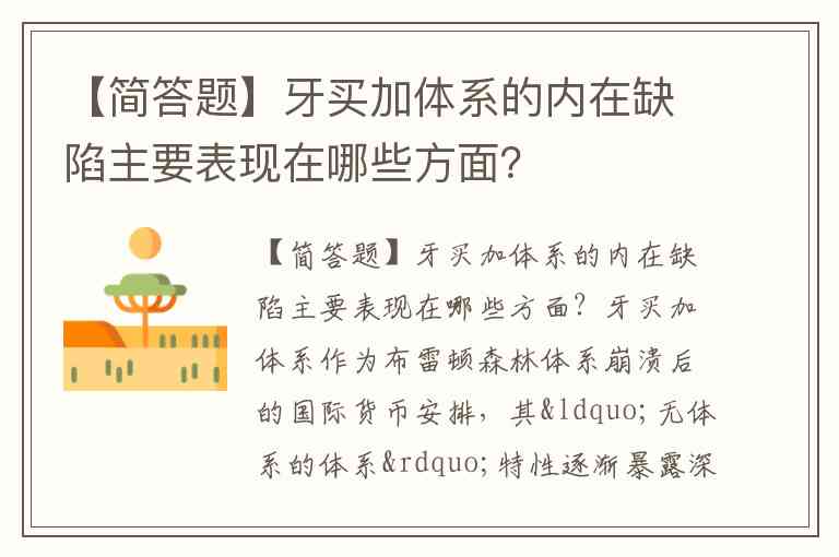 【简答题】牙买加体系的内在缺陷主要表现在哪些方面?