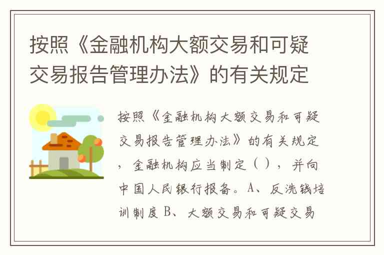 根据《金融机构大额交易和可疑交易报告管理办法》规定,金融机构应当制定大额交易和可疑交易报告内部管理制度并向中国人民银行报备,对应选项 B。